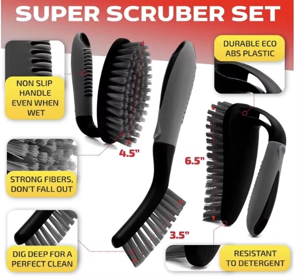 Our Scrub Brushes set are convenient for cleaning bathroom, toilets, shower, kitchen, sinks, carpet, floors, siding, pool and pavement in front of the house, ceramic tiles, and glass. Using bathroom scrubber, you can easily reach the perfect result when cleaning your appliances, sinks, and backsplash tiles. The bathroom scrub brushes for cleaning shower can reach into difficult areas and get rid of traces of water and limescale on your tiles, taps and bathroom accessories.