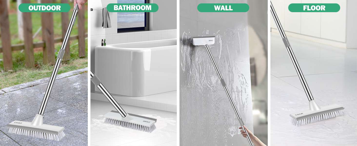 "2-IN-1 SCRUB BRUSH: Scrub brush and scraper integrated design, you can clean the floor with the brush, then scrap the stained water with the scraper, improving effectiveness when you doing housework.