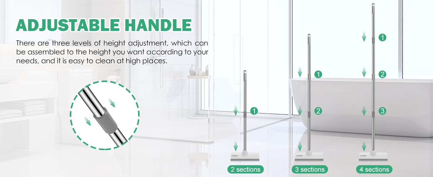 LONG ADJUSTABLE HANDLE: The stainless steel handle can be removed and attached, you can adjust the handle length from 26.5"" to 51"", to meet your different cleaning tasks.