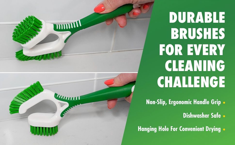 ERGONOMIC GRIP, CONVENIENT STORAGE: These cleaning brushes feature ergonomic non-slip grips for control and integrated hanging holes that allow quick drying and convenient storage"