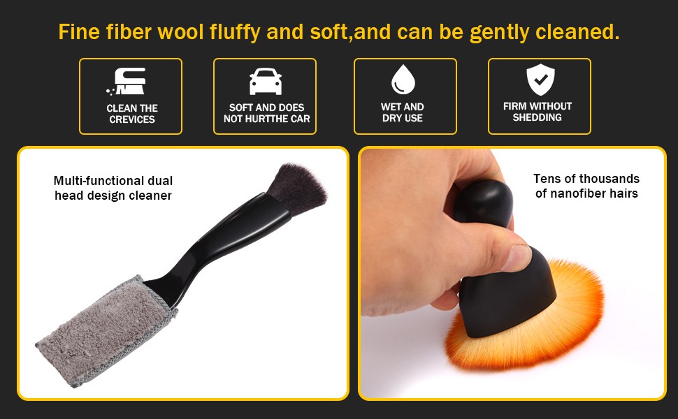 "【Soft Brush Bristles 】This Car duster interior brush with upgraded microfiber,fluffy and soft,not easy to shed,high quality soft brush, handle provides a comfortable grip without damaging the surface.