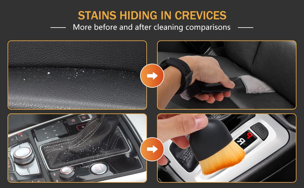 【Multi-purpose】Suitable for all corners of the car, effective for car air conditioning vents, center console, armrests, dust and food residues.Also for cleaning wheels,badges,dashboards,vents,leather and seats,brake calipers,grills and grilles,engine compartments, car/motorcycle interiors and exteriors.Also suitable for computers, radios and other daily equipment.