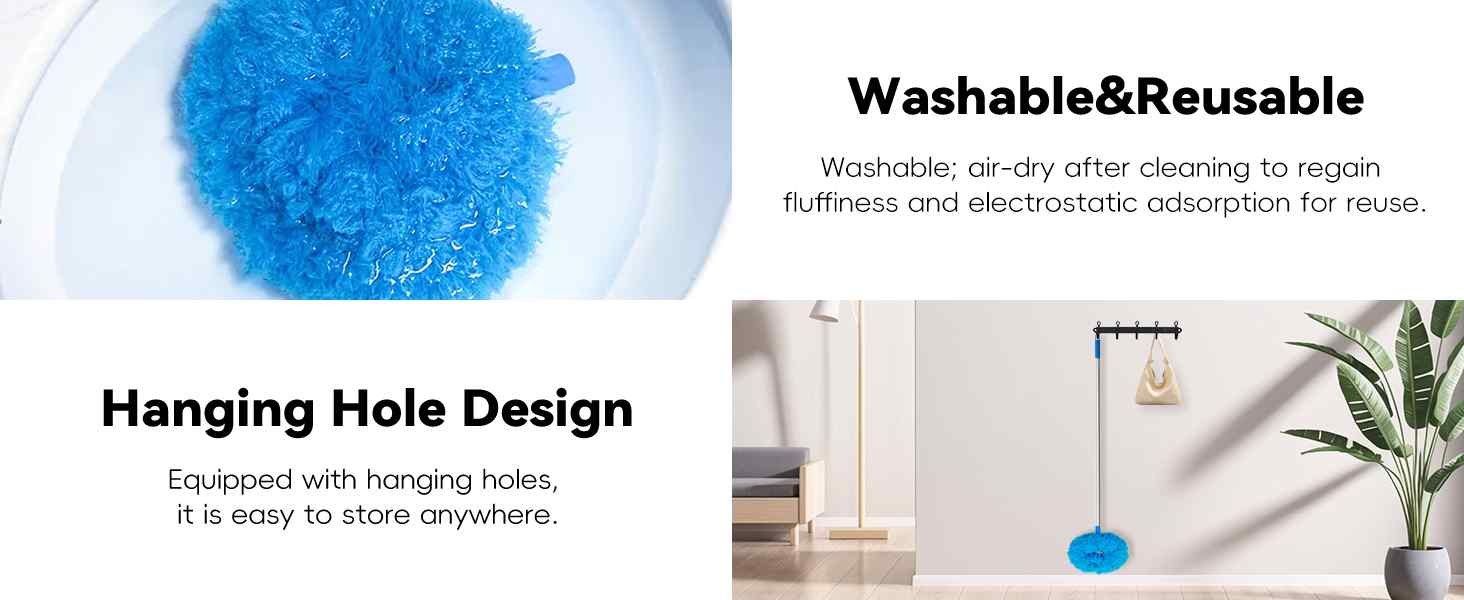[Easy to Store] The ceiling fan cleaning tools has a hanging hole at the back that is easy to place, and is easy to store and dry after use. This design not only helps save space, but also facilitates quick drying after cleaning.