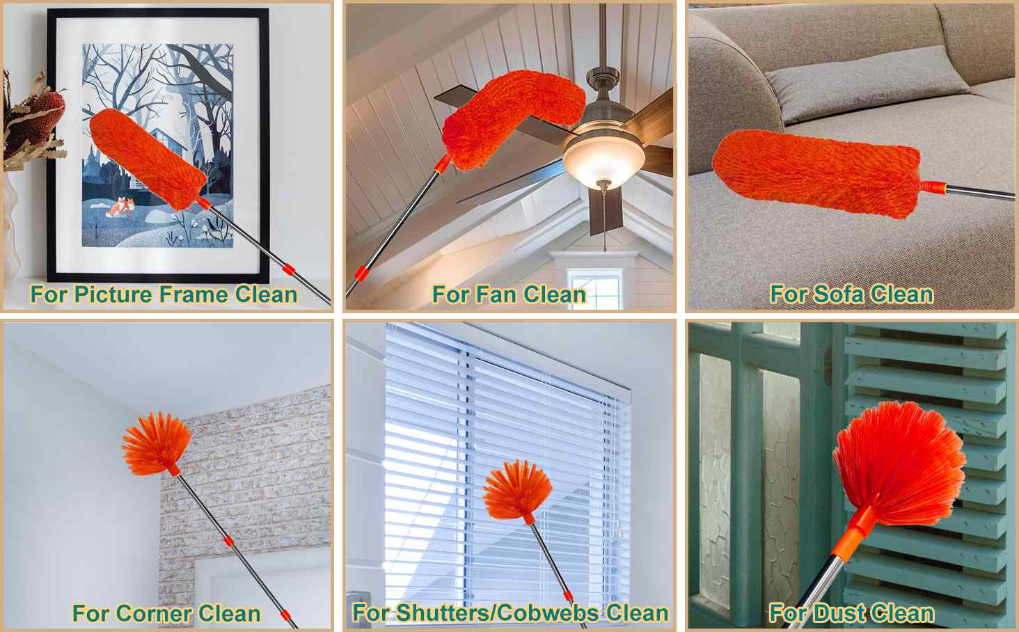 Farewell to spider webs and dust:You can use it to clean high ceilings/glass, exterior walls, fans, air conditioning vents, lampshades, household appliances, molds, walls, shutters, cars, picture frames, bookshelves, sofas, etc