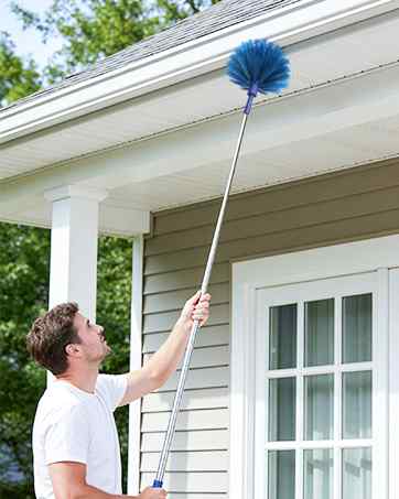 MEDIUM-HARDNESS BRISTLES - Our spider web brush features medium-hardness PET bristles that won't scratch your walls. It is very suitable for removing spider webs from ceilings, eaves, windows, ceiling fans, blinds and more.