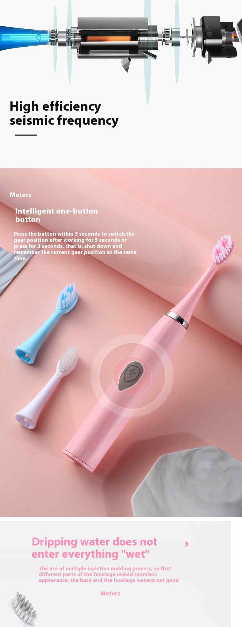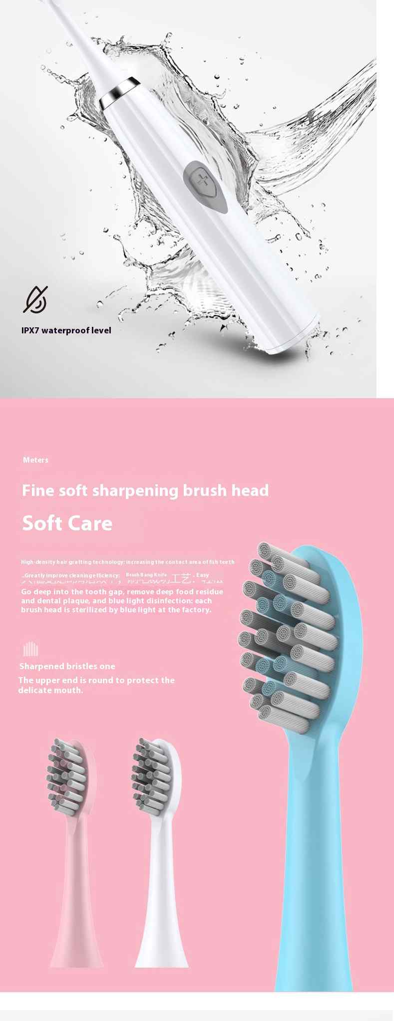 Waterproof Electric Toothbrush with Clean Massage 3 Brushheads, Electric Toothbrush Powerful Cleaning Whitening