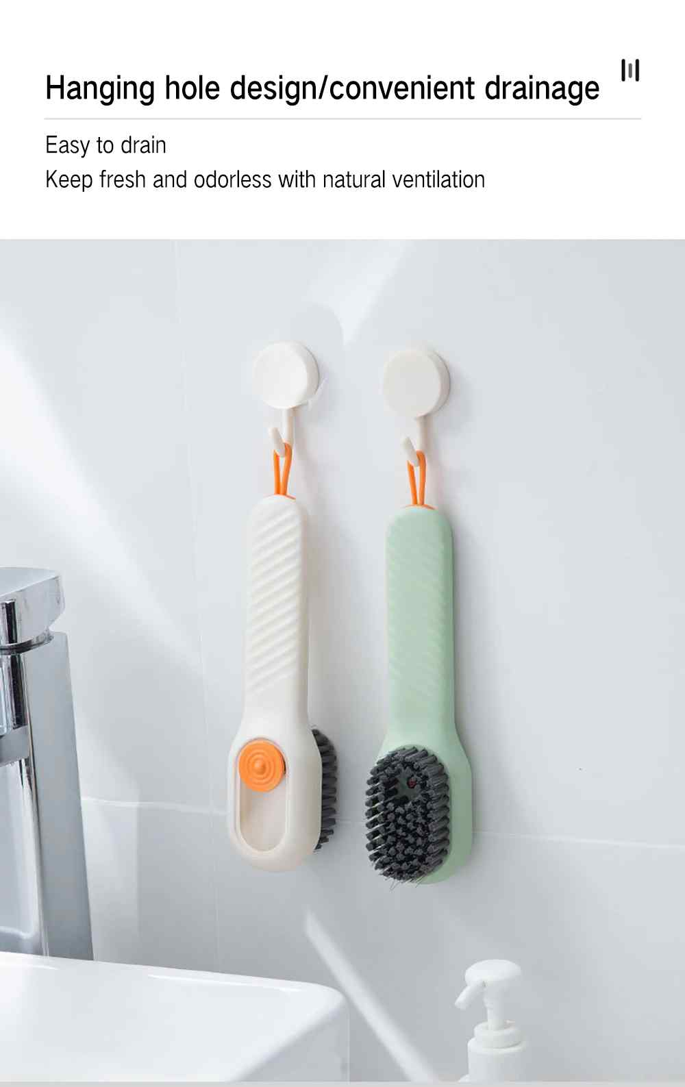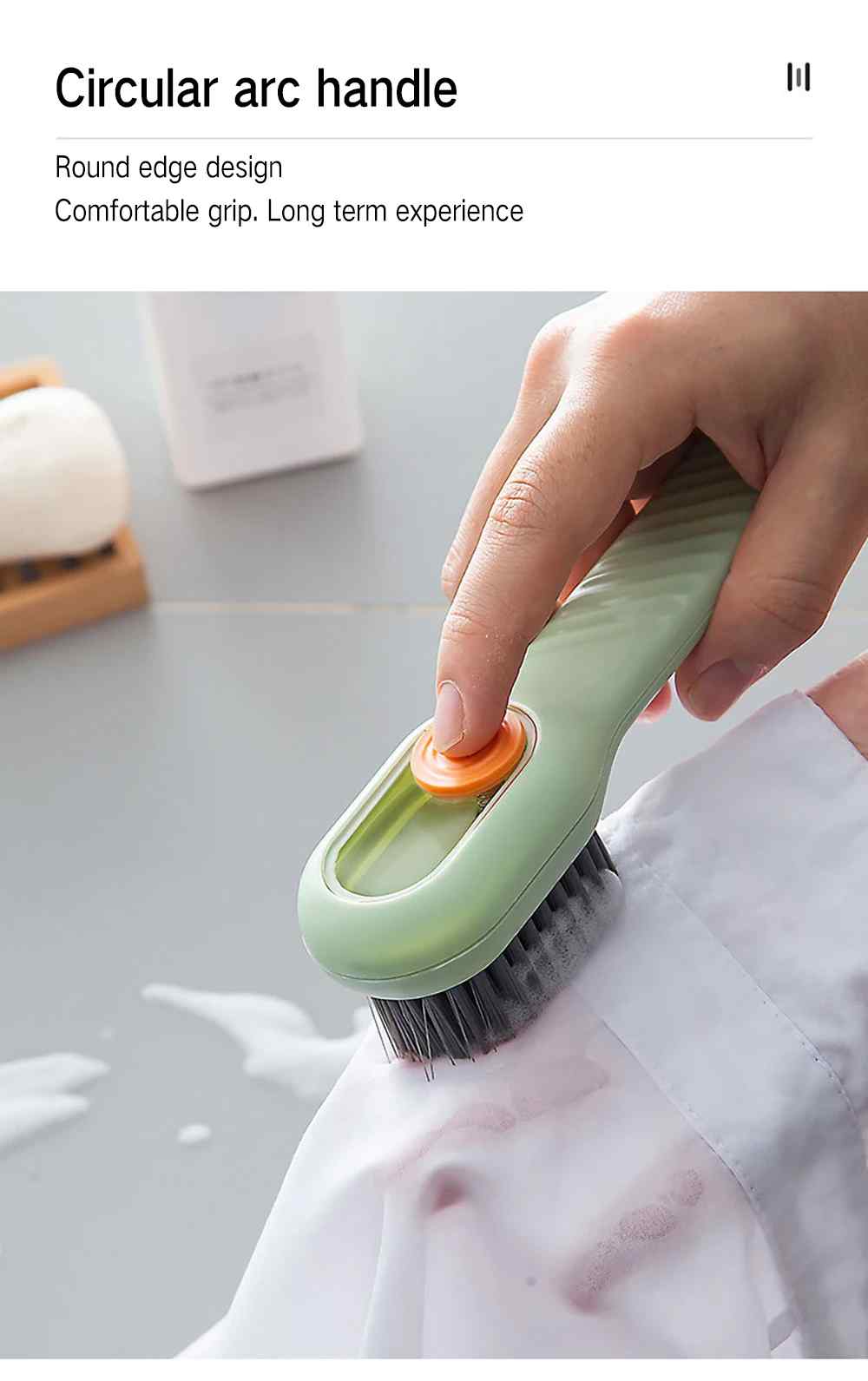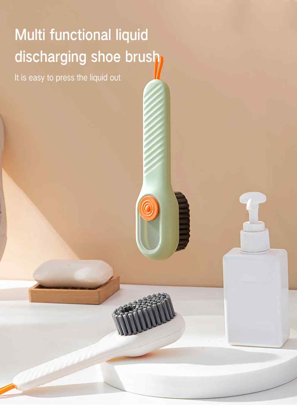 ① Quick foaming, easier cleaning.Multifunctional cleaning brush with liquid, it is really convenient to wash clothes, brush shoes,