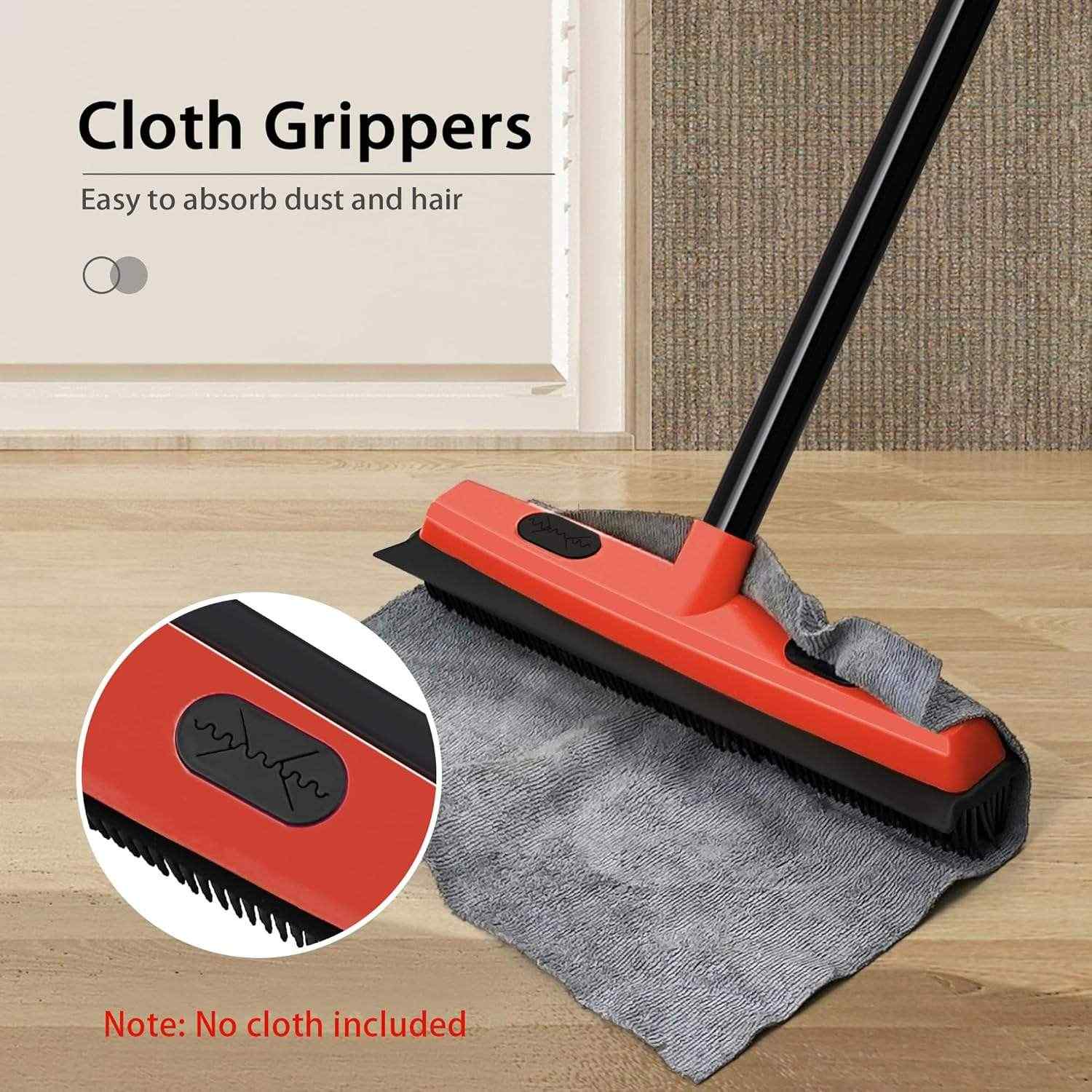 There’s two clips on the rubber brush head. You can clip cloth on it and use it as a mop. Besides, the carpet broom comes with a small comb brush, which can not only be used for combing hair, but also grabbing small garbage