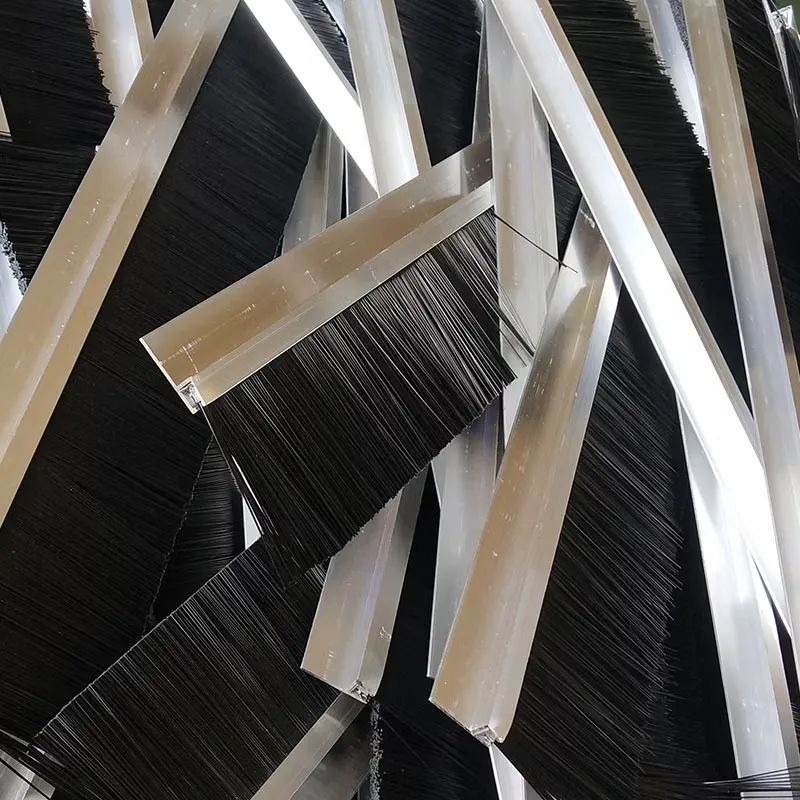 a.Strip brushes, often called metal channel back brushes, are versatile and durable. Strip brushes can be customized to fit anenormous amount of applications, including but not limited to: sealing, conveyor cleaning, surface cleaning, surface roughening,dusting, product separation or transfer, tensioning devices, static dissipation, external or internal pipe cleaning, filter or screen cleaning, glass washing or fruit and vegetable washing.