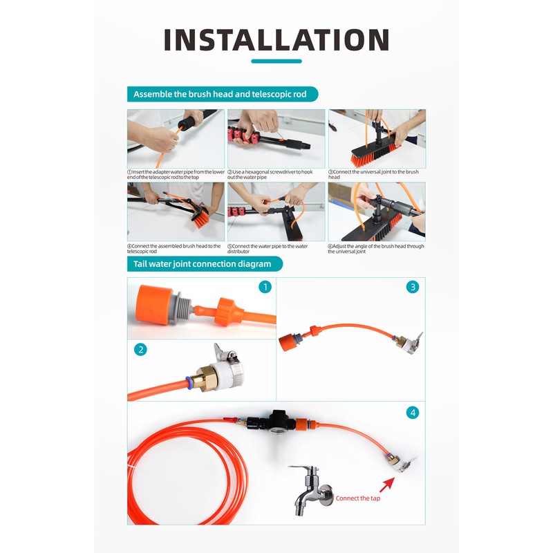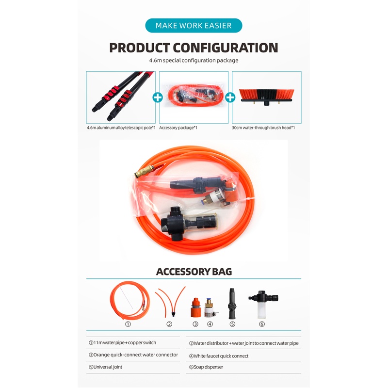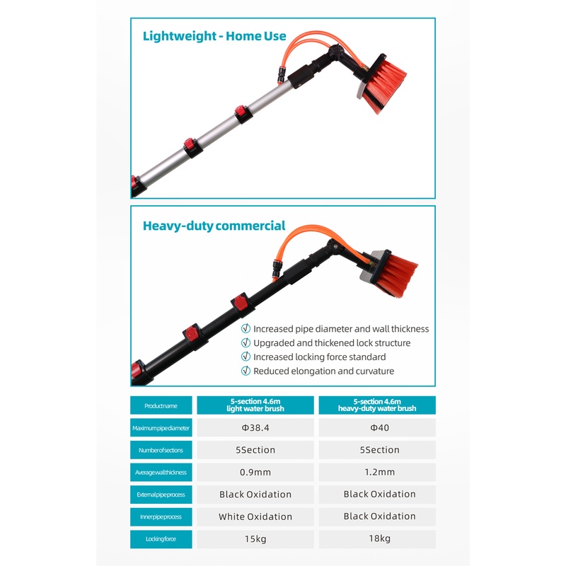 CLEAN WORLD Industrial Solar Panel Brush 4.6m Water Fed Pole Kit Adjustable Solar Panel Cleaner Tool Telescopic Pole Brush Window Cleaning Equipment