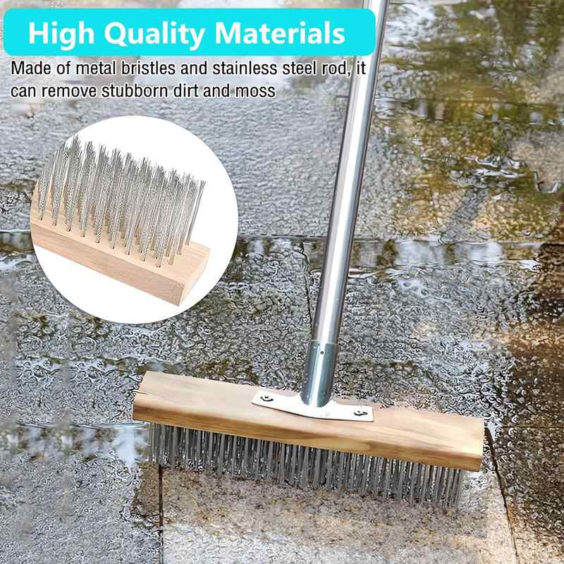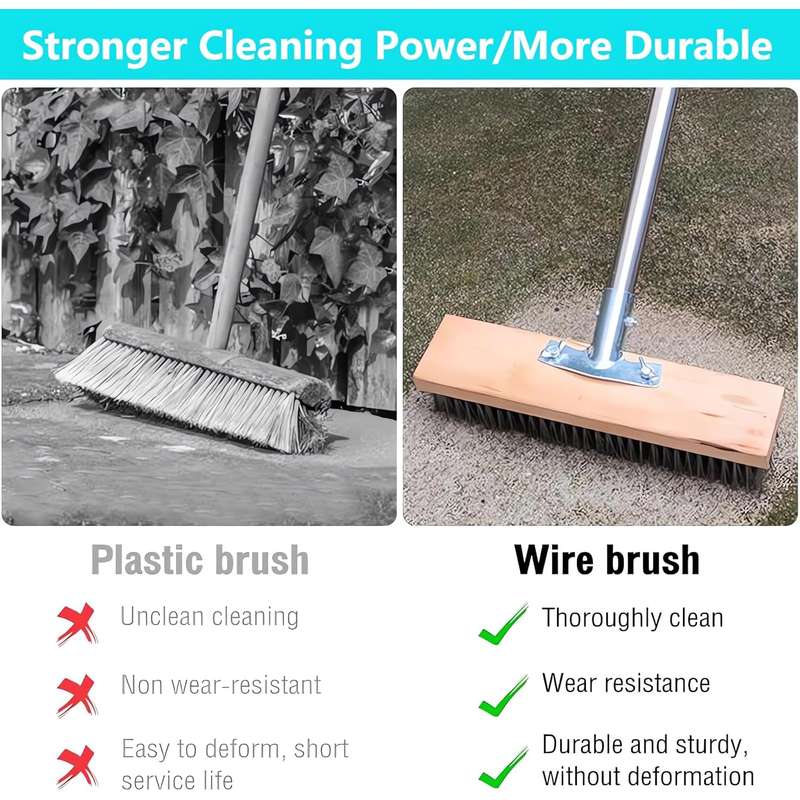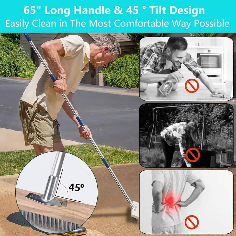 Easy to Install: The floor scrub brush with long handle is composed of 4 stainless steel poles and can be extended to 53 inches without bending over to use. The wire brush head can be easily installed with 2 wing nuts