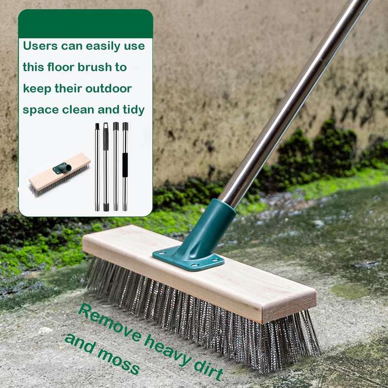 CLEAN WORLD Industrial Wire Brush Stainless Steel Wire Brush with Long Handle Deck Broom Brush Floor Scrubber Brush for Cleaning Outdoor Broom for Moss