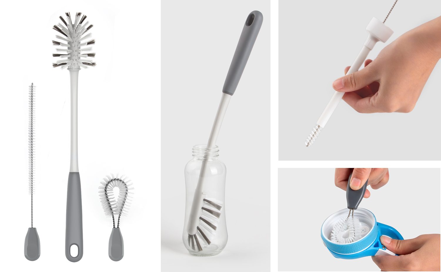Ergonomic non-slip handle of long bottle brush is covered with TPR material which fits comfortably in hand even when wet and soapy.