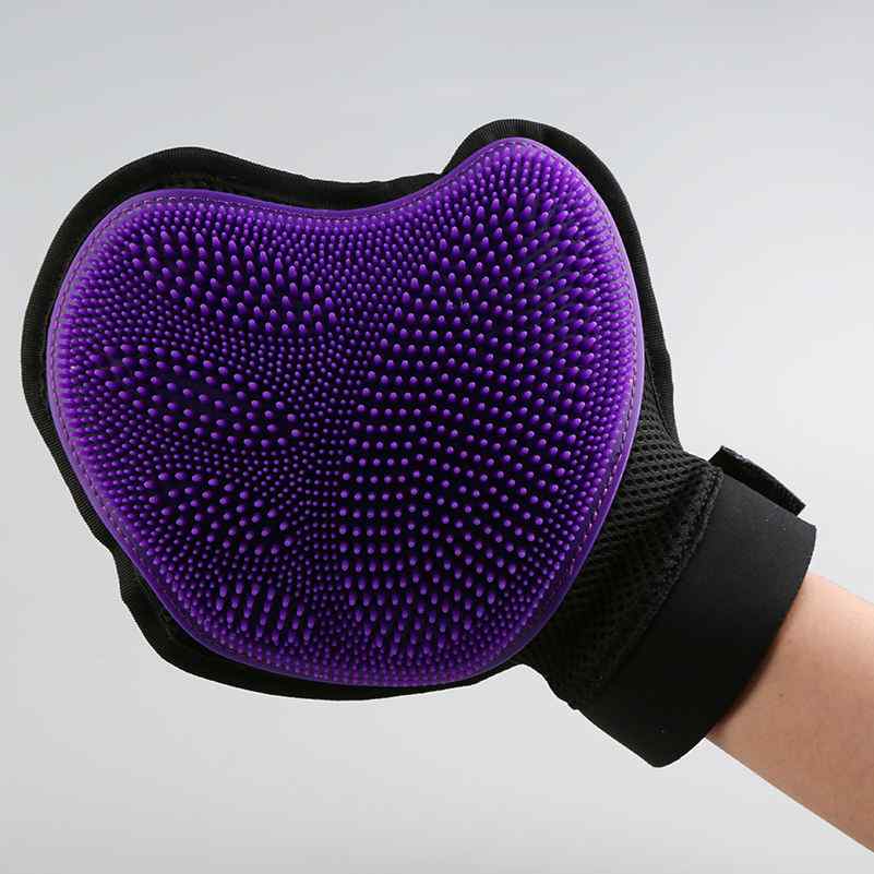 Shedding glove and scrubber with soft silicone tips allow for the gentle cleaning of pets from head to tail