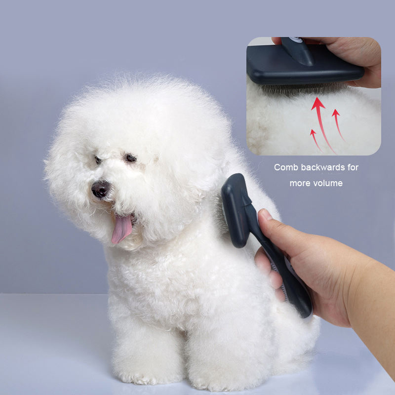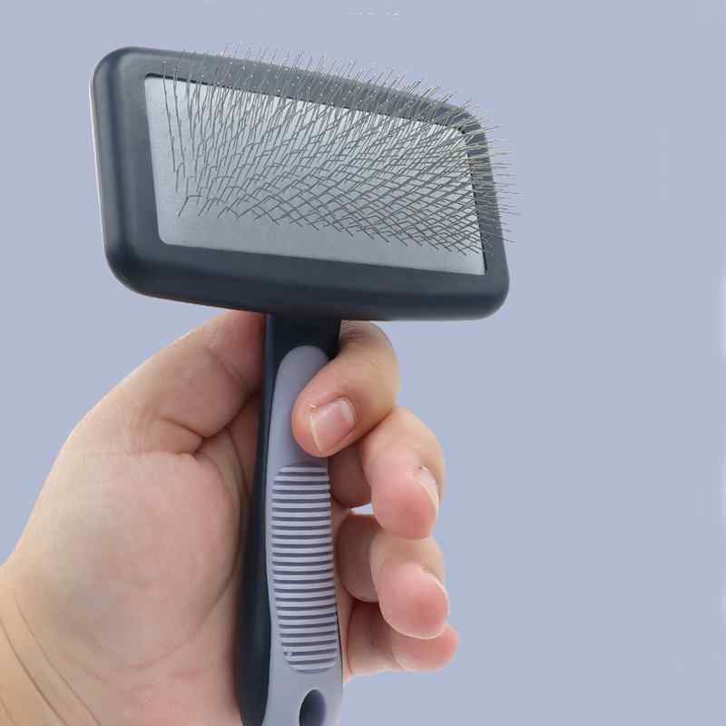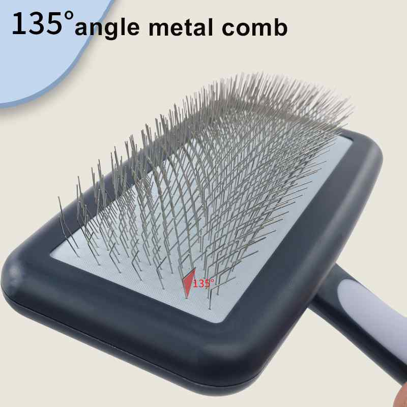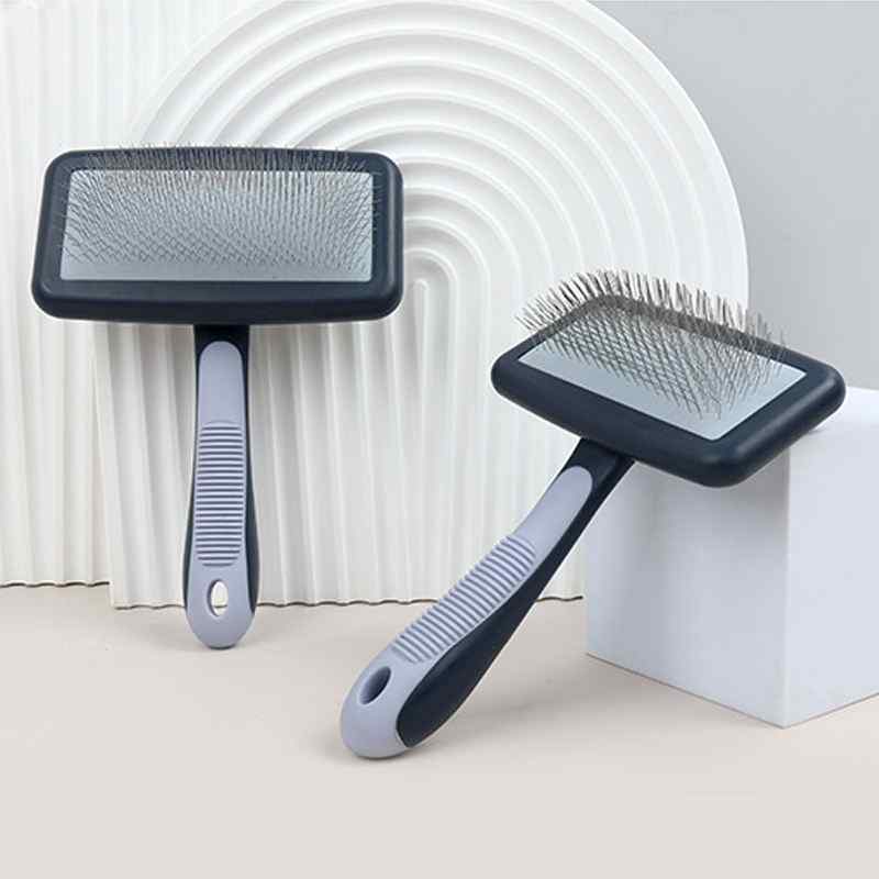 D80494Keep your pet’s coat neat and well groomed with the Pet Grooming Brush with red and black handle, designed for everyday grooming, coat maintenance, and finishing work. This versatile slicker brush features top quality dual level pins with both long and short wire pins that work together to help lift loose fur, remove tangles, and manage light mats across a variety of coat types. The curved brush head is shaped to follow your pet’s body, allowing the pins to reach through the coat more effectively during routine brushing sessions. This universal slicker brush is suitable for dogs, cats, puppies, kittens, rabbits, ferrets, and other small animals, making it a practical grooming tool for multi-pet households. It can be used on short coats, medium coats, long coats, thick coats, curly coats, wavy coats, and double coats as part of regular grooming and shedding management. The slicker brush helps collect loose hair, dead coat, and everyday debris while supporting a tidy, finished appearance after brushing. Designed with comfort and control in mind, the handle includes non-slip finger and thumb rests to provide a secure grip during grooming. This ergonomic design allows for better handling during longer grooming sessions, whether at home or as part of a professional grooming routine. Good for daily brushing, deshedding support, detangling, and finishing touches, this slicker brush pairs well with other grooming supplies such as combs, grooming gloves, undercoat rakes, and pet shampoo.
