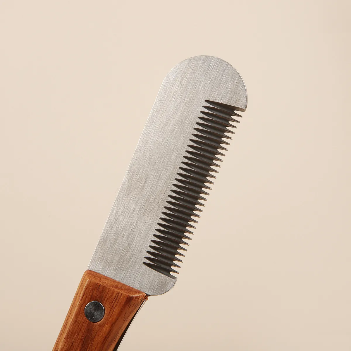 This professional pet stripping knife adopts high-quality stainless steel blade and natural wooden handle, sturdy and comfortable to grip. Specially designed for terrier breeds, such as West Highland White Terrier and Schnauzer. It effectively removes loose floating hair, redundant undercoat and dead hair, neatly trimming rough fur texture. Sharp but safe blade helps finish professional stripping and carding, ideal for daily beauty grooming of terrier dogs.