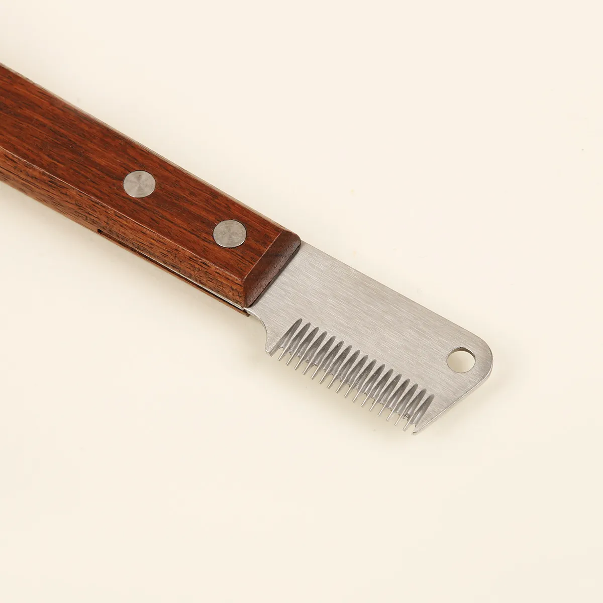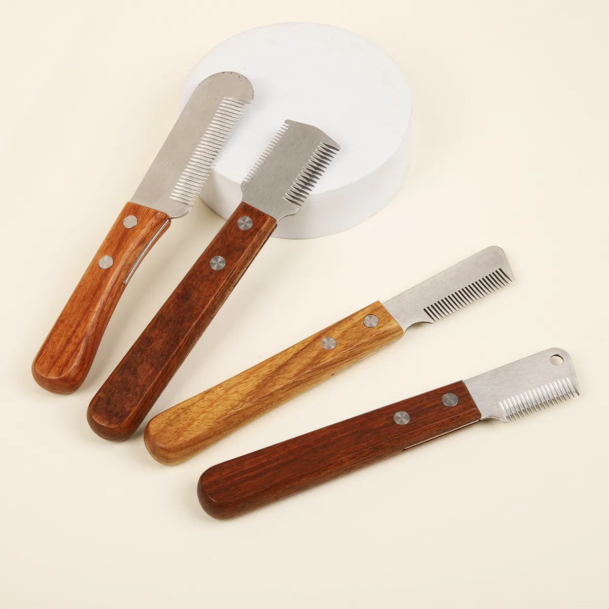 CLEAN WORLD Wooden Handle Stripping Knife, Stainless Steel Pet Grooming Tool for Terrier Dog Floating Hair Removal