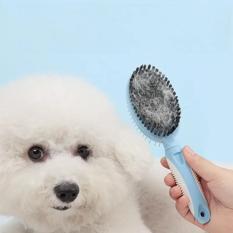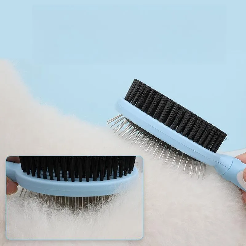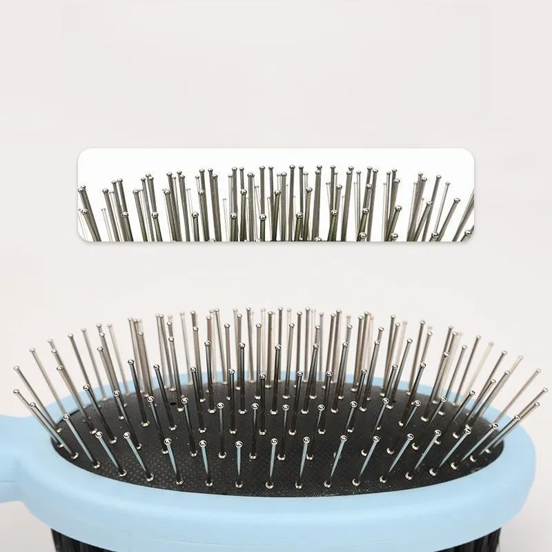 This dual-sided pet steel needle comb is a multi-functional grooming tool for dogs and cats. The fine steel needle design effortlessly untangles matted hair, smooths messy fur and enhances pet coat luster. Safe and soft needle bristles gently massage pet skin to promote blood circulation and reduce hair loss. Lightweight and durable, the two-in-one comb meets daily hair brushing and beauty care needs, ideal for all kinds of furry pets.